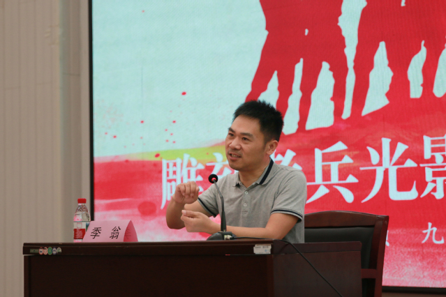 季翁同志以“雕刻老兵光影 讲好英雄故事”为主题,系统介绍了“铭记英雄,关爱老兵”专项行动项目组走访九十余名抗战老兵的实践成果。通过展示采写的英雄事迹文献、近千幅纪实照片及影像资料,结合两位老兵的典型事迹,生动展现了革命老兵坚守信仰、舍生忘死的崇高精神,深入阐释英雄精神的时代价值。他号召青年党员以老兵为镜,“既要讲好昨天的故事,更要做好今天的‘讲故事的人’”,现场反响热烈。